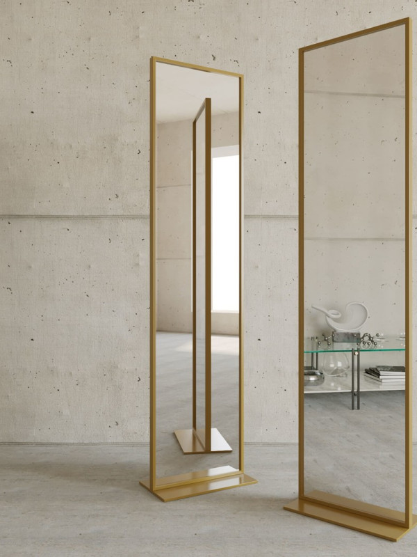 Дизайнерское напольное одностороннее зеркало Glass Memory Ablestar в металлической раме золотого цвета в Кисловодске