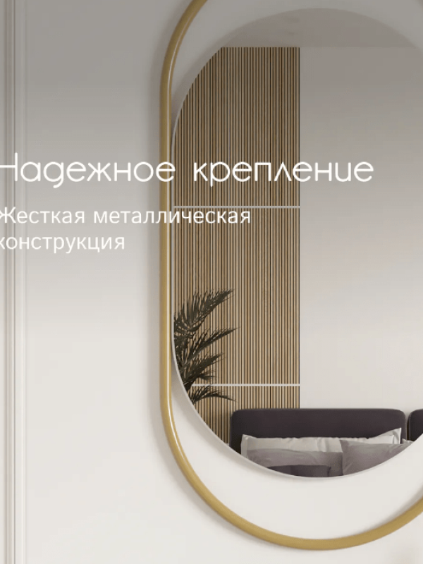 Зеркало «Muse». Артикул GMZ-02-1-1/2/3 Идеальная симметрия и простая изысканность ар-деко в виде овального настенного зеркала в металлической раме способны дополнить интерьер, выполненный в любом стиле, начиная от винтажного и заканчивая авангардным. Зеркальное полотно является продукцией известного бельгийского производителя AGC, который славится непревзойдённым качеством своих зеркал. Идеально подходит для ванной комнаты или спальни.Характеристики:– профиль рамы круглый, диаметром 20 мм; – габариты – 1040х540х20 мм; – размер зеркального полотна – 800х500 мм, толщина – 4 мм; – вес – 7 кг; – устойчивая матовая порошковая окраска; – возможные цвета – золотой, чёрный, белый; – саморезы для крепления к стене в комплекте; – гарантия – 1 год.